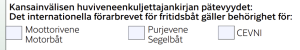 Huviveneenkuljettajakirjaa hakiessa valitaan lomakkeelle mitä pätevyyksiä haetaan.Â